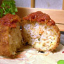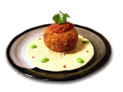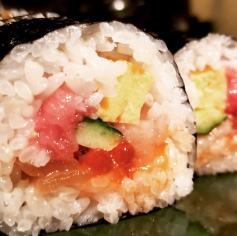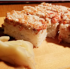 イタリアンとお寿司のコラボメニュー。サクっと、ころもを割ると酢飯が! オリジナルトマトソースとオリジナルの濃厚なソースの 2種類の味でお楽しみください。